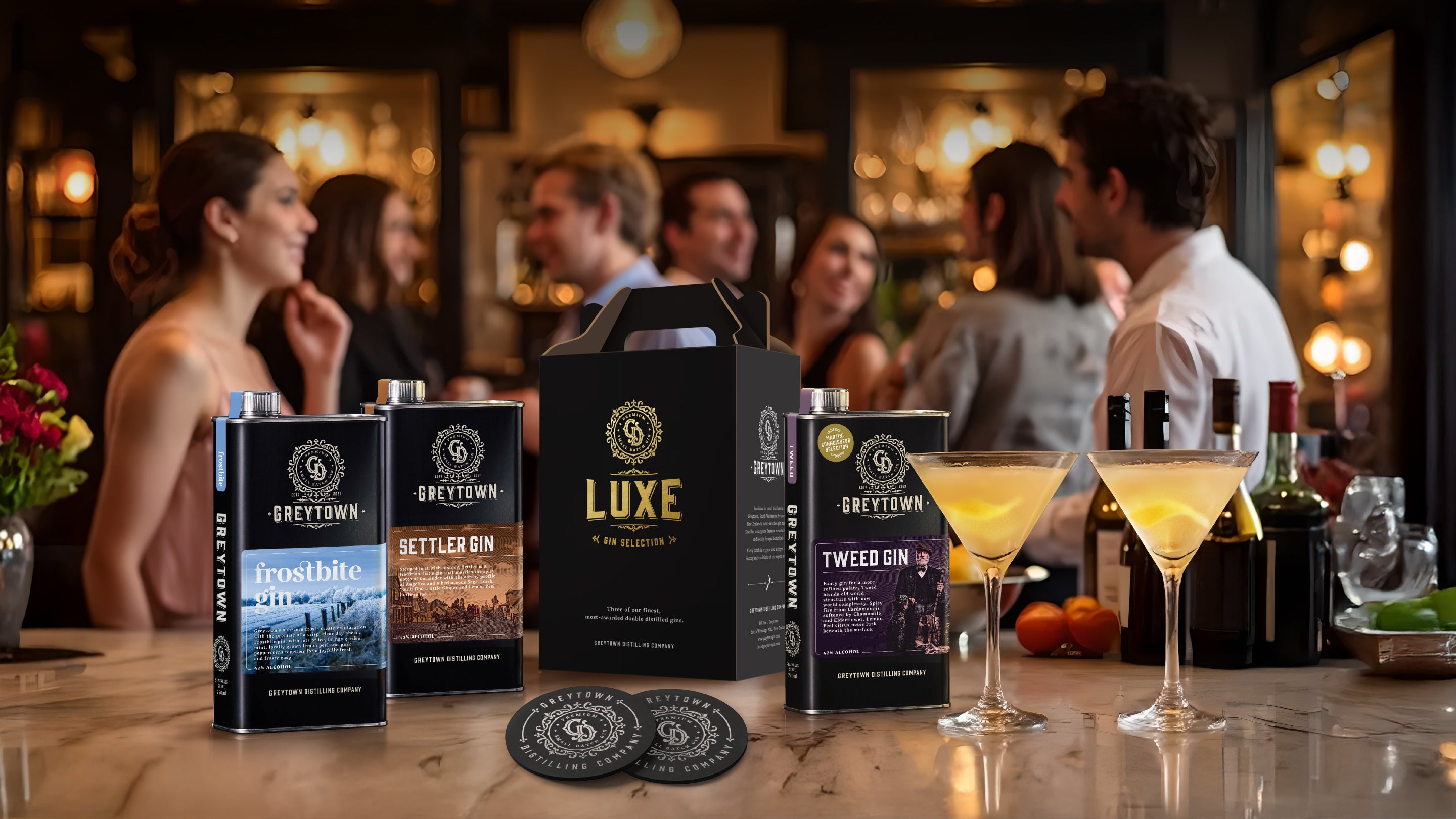 Only for connoisseurs, the GDC Luxe Gin Selection features our most awarded gins in one beautifully foiled gift box. LUXE includes the multi-award winning SETTLER London Dry Gin, which took a Grand Gold Medal in Paris 2024, the incredibly popular FROSTBITE Solstice Gin which picked up an appropriate SILVER MEDAL in London’s 2024 awards and the globally heralded TWEED Gin, our Paris DOUBLE GOLD and earner of a London World’s Top 50 Gins status. These are gins designed to turn heads in an equally impressive gift presentation box. Give some of New Zealand’s most acclaimed gins to someone who deserves the highest level of thanks or recognition. Includes three 750ml stainless steel flasks of Greytown’s finest.